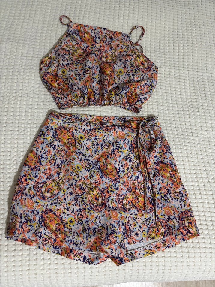 Renkli tie-dye desenli, dantel detaylı, askılı ve straplez yaka tasarımıyla bohem tarzda kısa mini tulum. Rahat kesimi ve hafif kumaşıyla dış mekan kullanımı için uygundur.