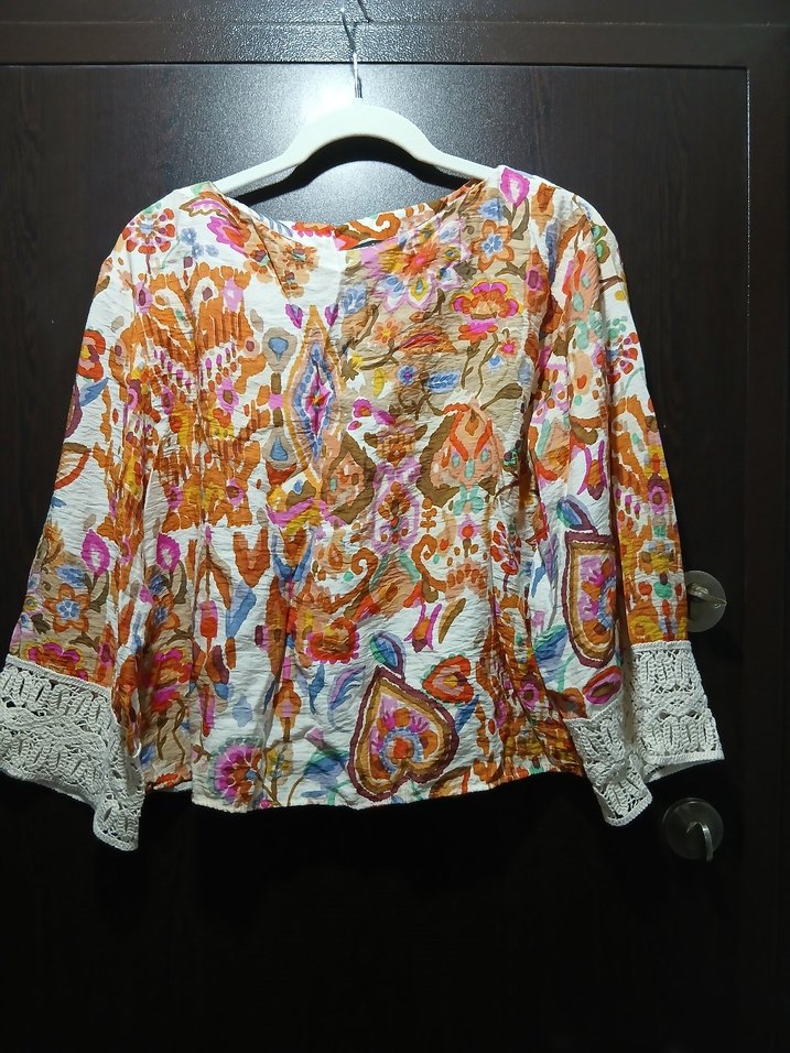 Renkli Bohem Dantel Detaylı Uzun Kollu Bluz