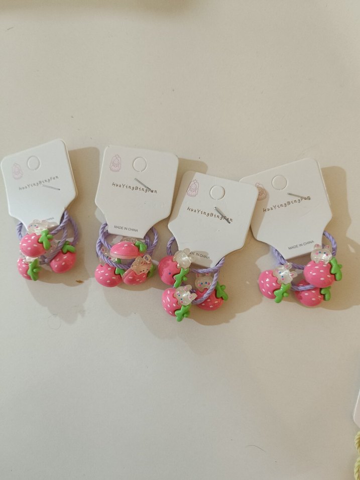 Renkli, elastik, pembe çilek figürlü, bohem desenli çocuk saç lastiğidir.
