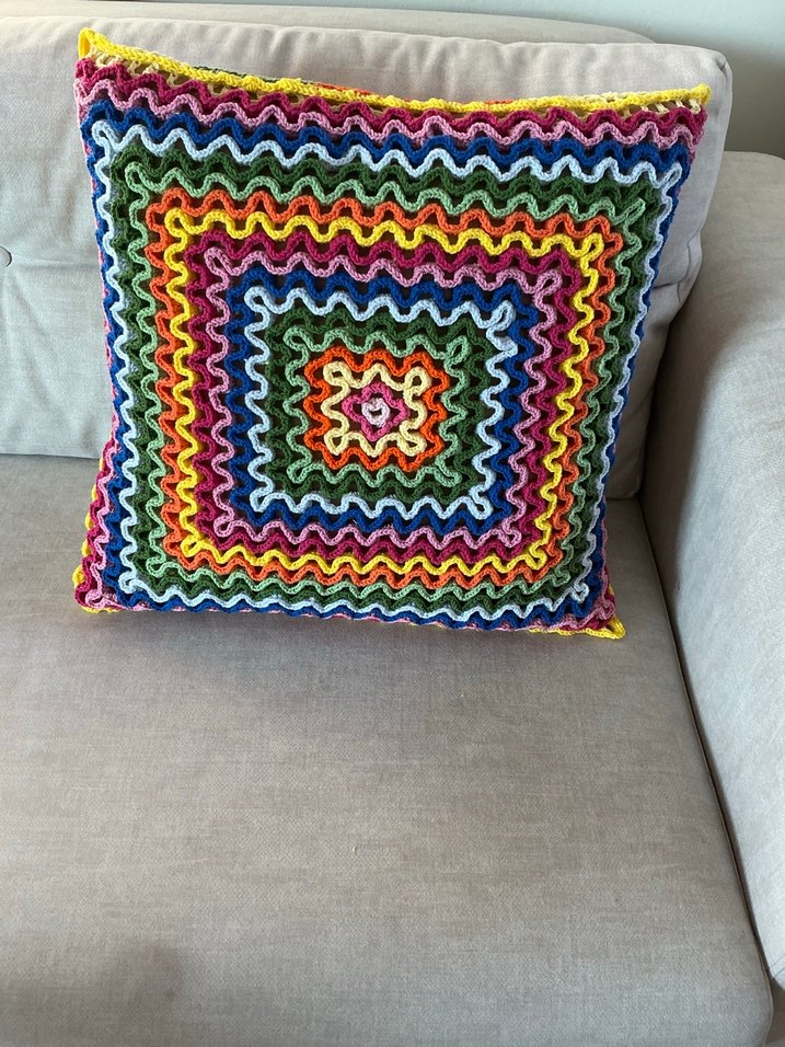 Renkli, desenli ve bohem tarzda bir dekoratif yastıktır. Canlı ve dalgalı dokusuyla her oturma alanına enerji katar. ️