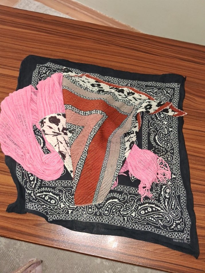 3 adet Kadınlar için çok renkli, koyu tonlarda bohem desenli ve drapeli tekstil şal. Retro ve hippie tarzını yansıtır.