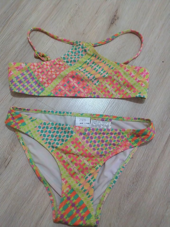 Renkli baskılı ve elastik kumaştan yapılmış, ince askılı ve mini boyda bohem tarzda, plaj için uygun dar kesim bikini.