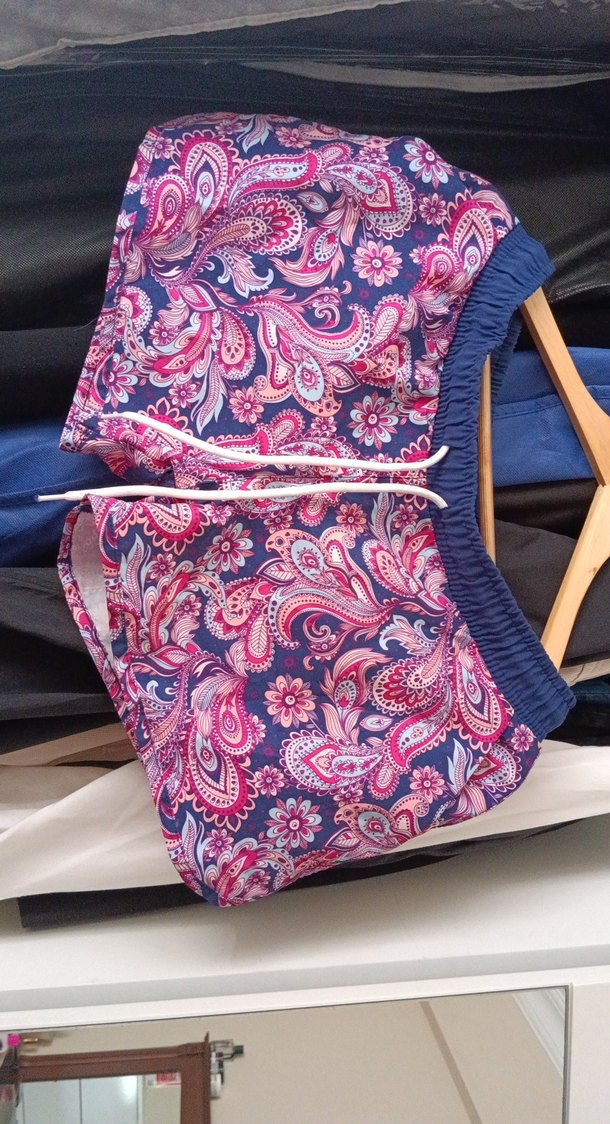 Renkli bohem desenli, kullanımı rahat ve konforlu, bol kesim ve lastikli bel bandına sahip kısa deniz şortu.