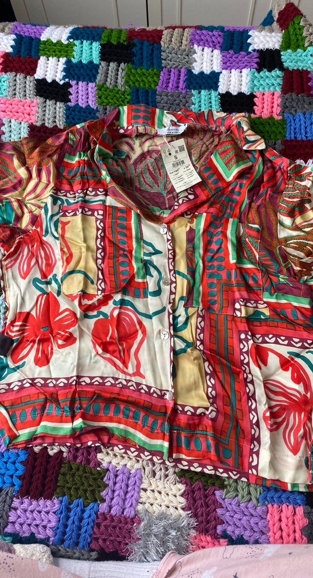 Renkli bohem desenli, bol kesim, kısa kollu, kayık yaka ve dökümlü ayrıntılı uzun gömlek. Marka temsilidir.