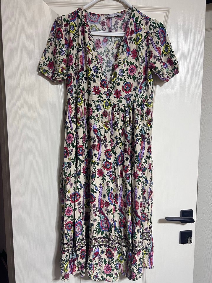 Renkli Bohem Desenli V Yaka Hamile Elbisesi/normal elbise