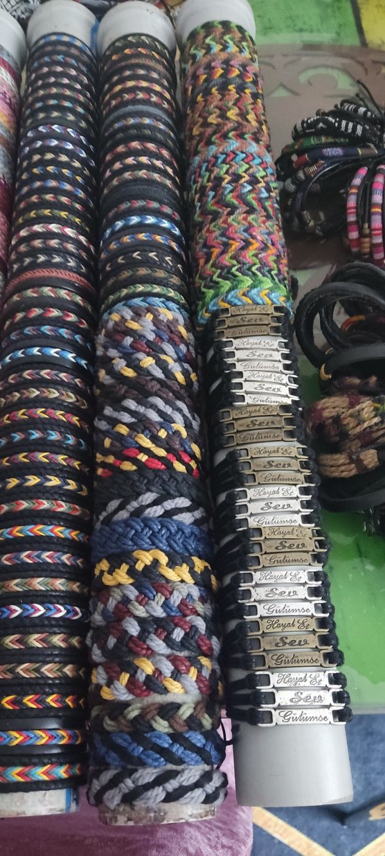 Renkli, desenli elastik kadın bileklik, bohem ve retro karşı kültür tarzlarını yansıtıyor. Günlük kullanıma uygun. tanesi 75 TL