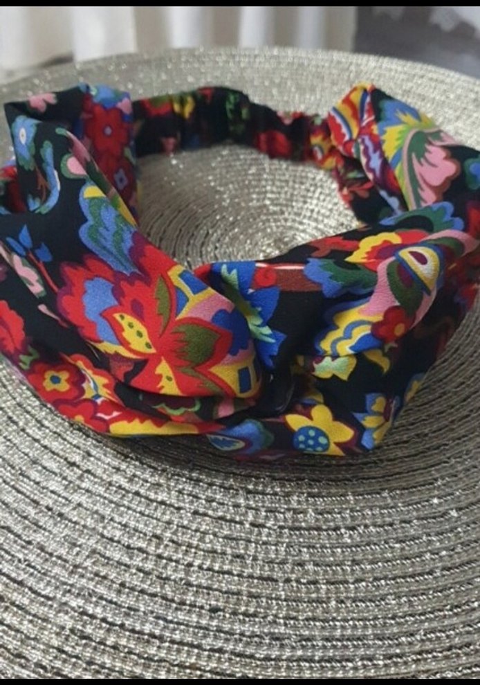 Renkli ve elastik yapıya sahip, sentetik kumaştan yapılmış bohem tarzı saç bandı.