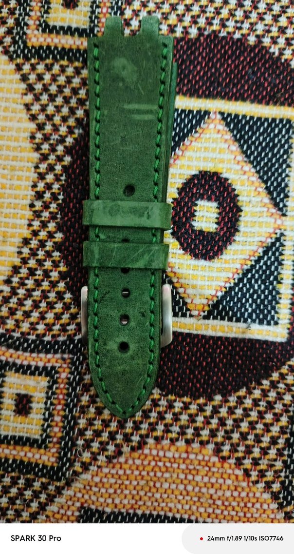 Renkli tasarımlı, yeşil deri görünümlü erkek saat kayışı. Bohem ve retro tarzıyla dikkat çeker. ⌚