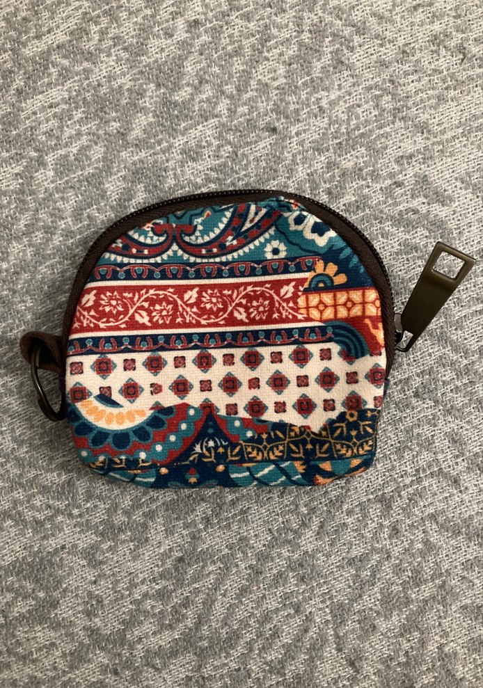 Renkli bağlama desenli, fermuarlı bohem tarzı kadın cüzdanı, sentetik kumaştan üretilmiştir, günlük kullanım için uygundur.