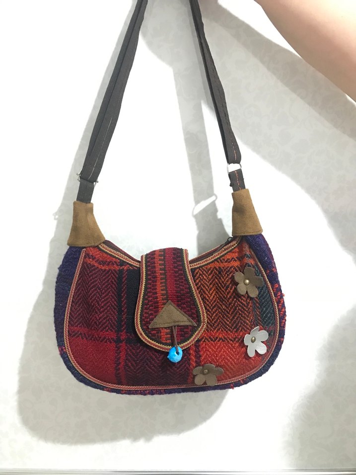 Sıfır ürün ✨ Renkli, bohem çapraz çanta, tokalı kapak ve çiçek detayları ile, batik desenli ve ayarlanabilir askılı. Günlük kullanıma uygun.