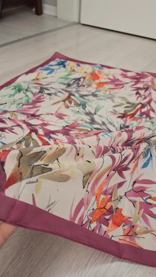 Kadınlar için hafif, çok renkli desenli, dökümlü tarzda, yumuşak sentetik kumaştan yapılmış bohem soft eşarp