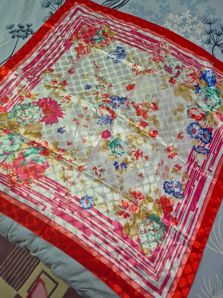 Renkli çiçek desenli, sentetik kumaştan yapılmış, bohem ve retro tarzda drapeli kadın Eşarp Bona sera markasına aittir
