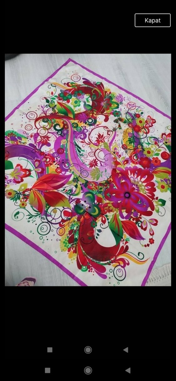 Renkli çiçek ve soyut desenlere sahip, yumuşak sentetik kumaştan drapeli kadın fularıdır. iki adet bayan esarp