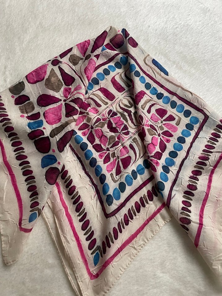 Hafif, çok renkli tekstilden yapılmış, bohem desenli, drapeli kadın fularıdır. Retro tarz için uygundur.
