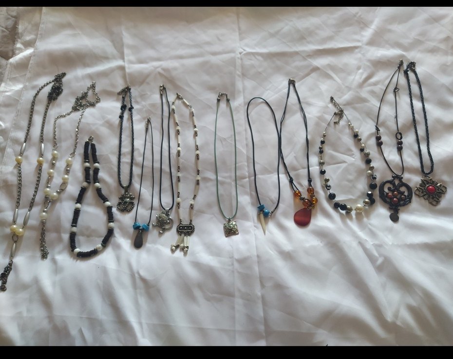Çeşitli boncuklar ve kolyeler içeren renkli bohem tarzda kadın kolye seti. Retro ve hippie tarzına uygun.