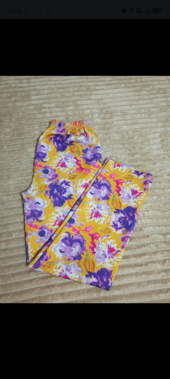 Rahat bohem tarzı, renkli tie-dye desenli, elastik bel bantlı bol kesim kadın kumaş pantolon.