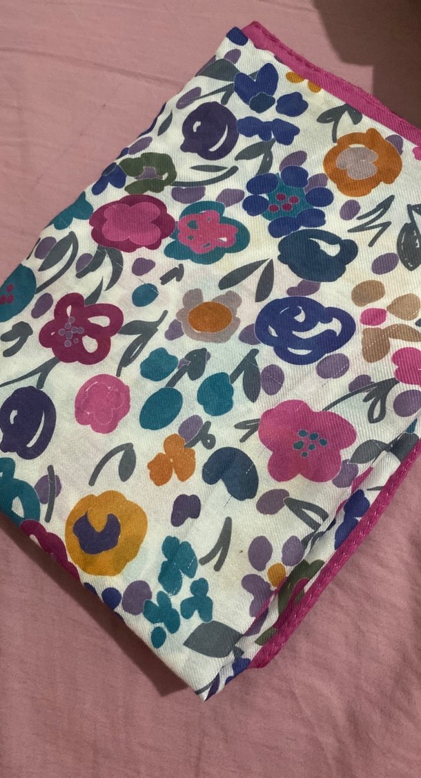 Renkli çiçek desenli kadın şalı, fermuarlı detaylı. Sentetik kumaştan yapılmış, bohem ve retro tarzlara uygundur. Ufak çekilmeler var