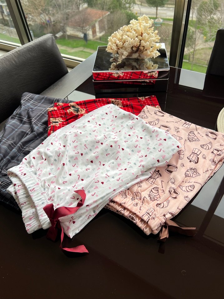 Renkli, kısa kollu ve bol kesim kadın pijama takımları, bohem desenlerle kısa boyda. Rahat ve şık uyku keyfi için ideal.