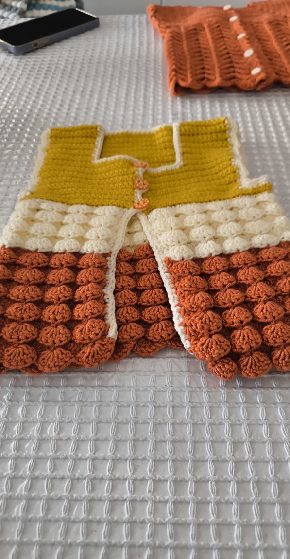 Renkli, işlemeli örgü kumaştan yapılmış, bohem tarzda, kız çocuklar için kolsuz ve dar kesim hırka.