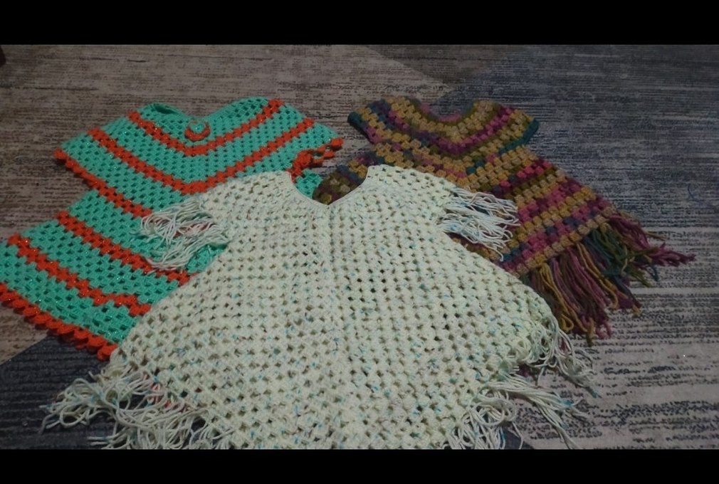 Renkli, örgü kız çocuk panco, kayık yaka ve kolsuz tasarıma sahip, bol kesim ve bohem tarzda. el emeği panço modellerimizi güle güle kullanmanız dilekleriyle
