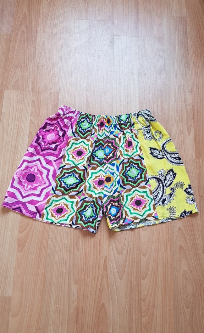 Renkli tie-dye desenli , bol kesim mini şort , Yumuşak kumaştan , bohem tarz için uygun , beden yazmıyor S-M-L rahatlıkla giyebilir , hiçbir sorunu defosu ve yırtığı yoktur , tertemizdir