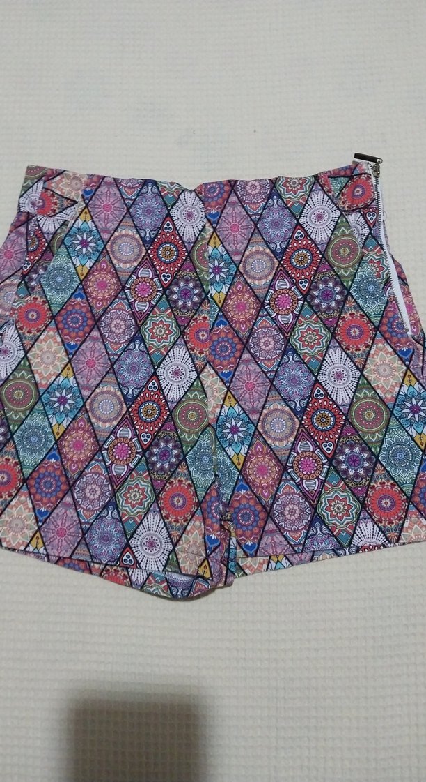 Canlı bağlama desenli, fermuarlı yan detaylı, bohem tarzda renkli mini şort. Yumuşak dokulu kumaştan, günlük kullanıma uygun. Yandan fermuarlı ve cepli