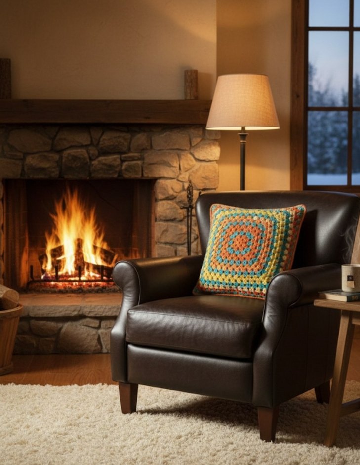 Turuncu, sarı ve turkuaz tonlarında canlı desenli örgü ile renkli bohem tarzda yastık. Her mekâna sıcak ve sanatsal bir dokunuş katar. içi dolgulu.