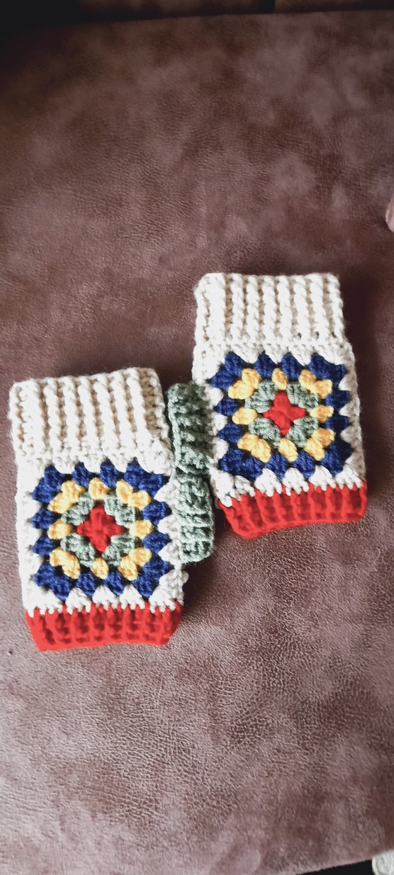 Renkli, bohem tarzda, örgü kadın eldiveni. Rahat ve yumuşak dokulu, retro desenli, sıcak tutan örgü malzeme.