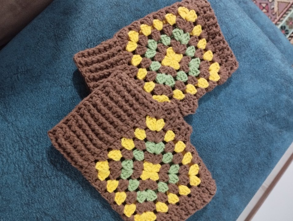 Rahat ve yumuşak örgüden yapılmış, renkli bohem tarzda kadın eldiveni. Retro ve hippie havası taşıyor.