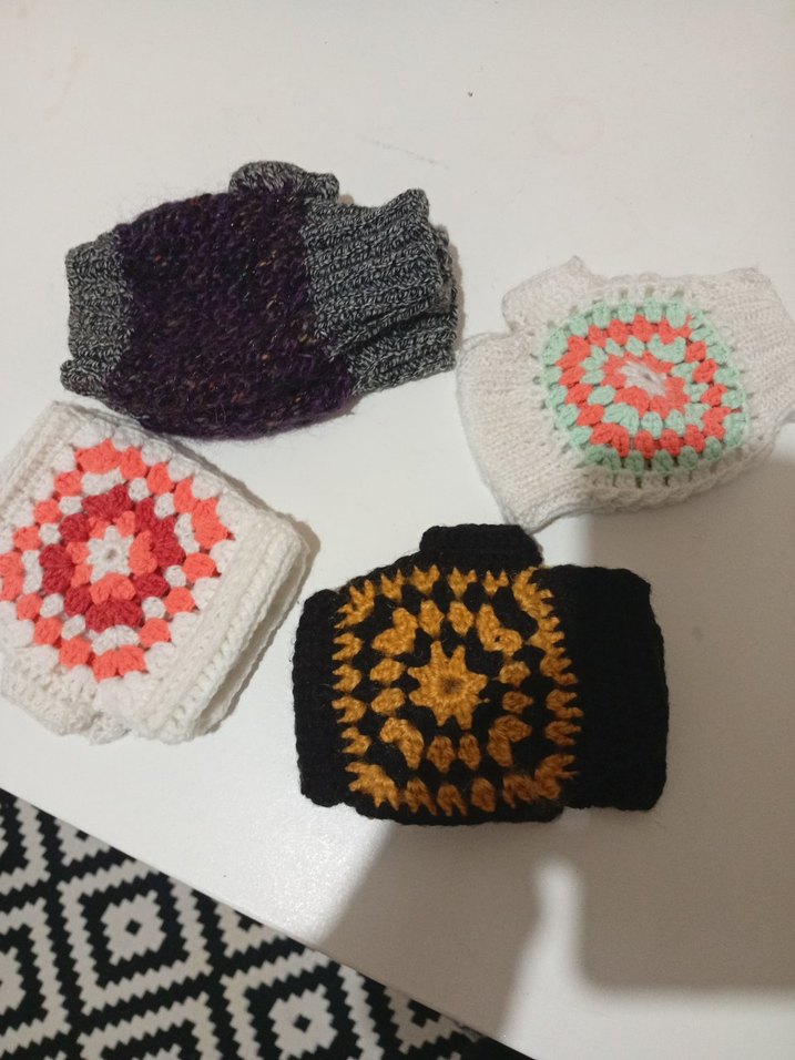 Renkli, bohem ve retro desenlere sahip kadın örgü eldivenler. Sıcak ve rahat bir hippie tarzı için ideal.
