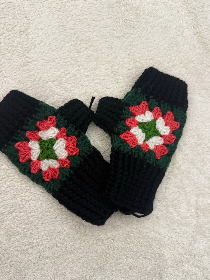 Renkli, bohem tarzda örülmüş kadın eldivenleri, rahat ve retro bir görünüm sunar.