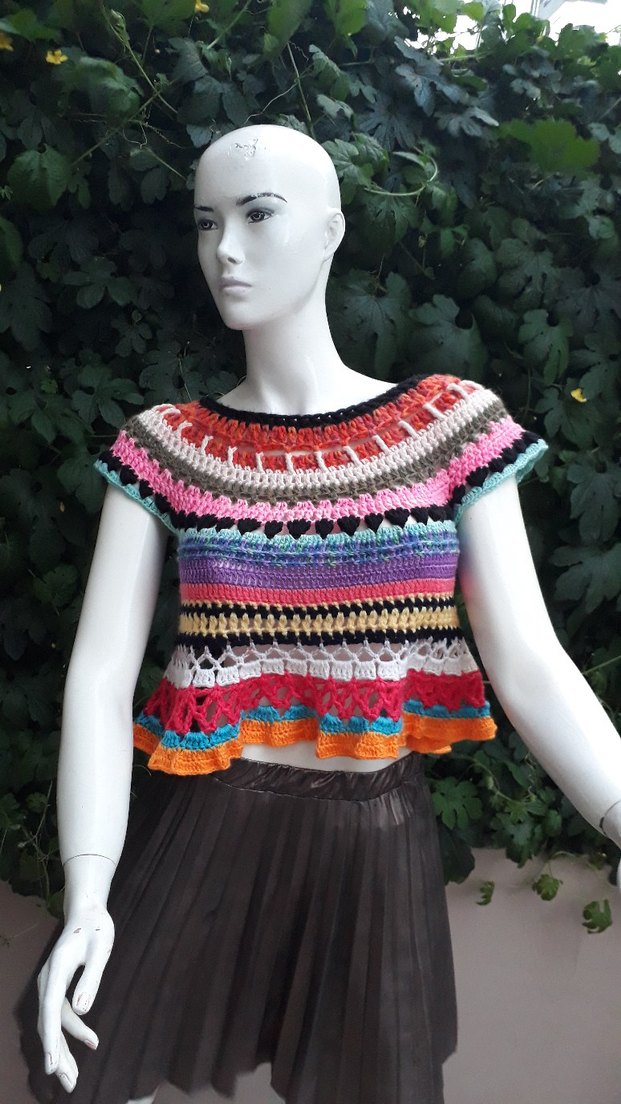 Renkli Bohem Örgü Kısa Bluz #bluz #crop #büstiyer