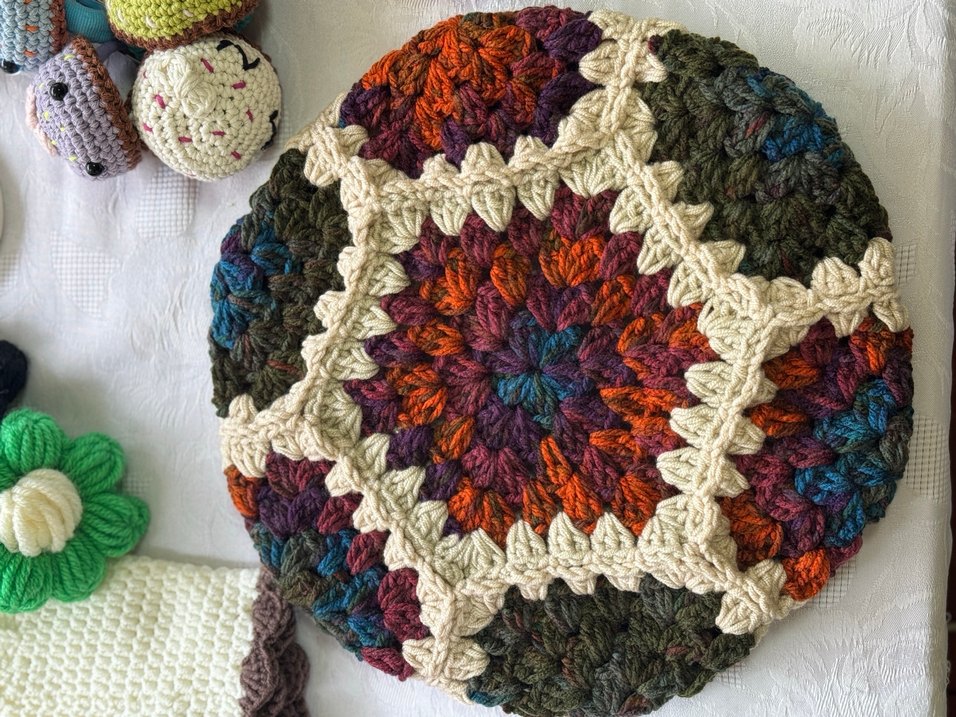 Renkli Bohem Örgü Motifli Ressam Beresi Tamamı el emeği, özenle örülmüş ve her motifi tek tek birleştirildi. Ressam beresi formu sayesinde hem günlük kombinlerde hem de kış stilinde çok şık durur. Kendine ya da el yapımı ürün sevenler için özel ve zamansız bir parça.