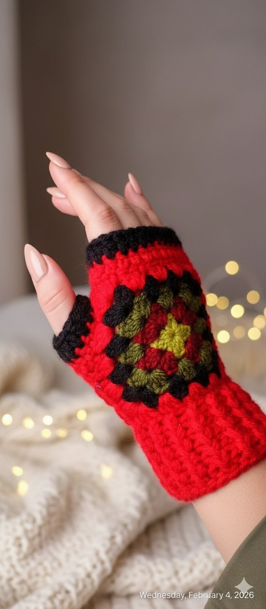Renkli Bohem Örgü Parmaksız Eldiven