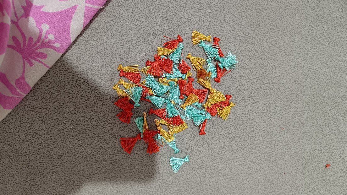 tülbent yazma için püskül saçak oyası 70 adet var bir tane tülbent için tam yeterli sayıda kiremit hardal ve turkuaz renklerde