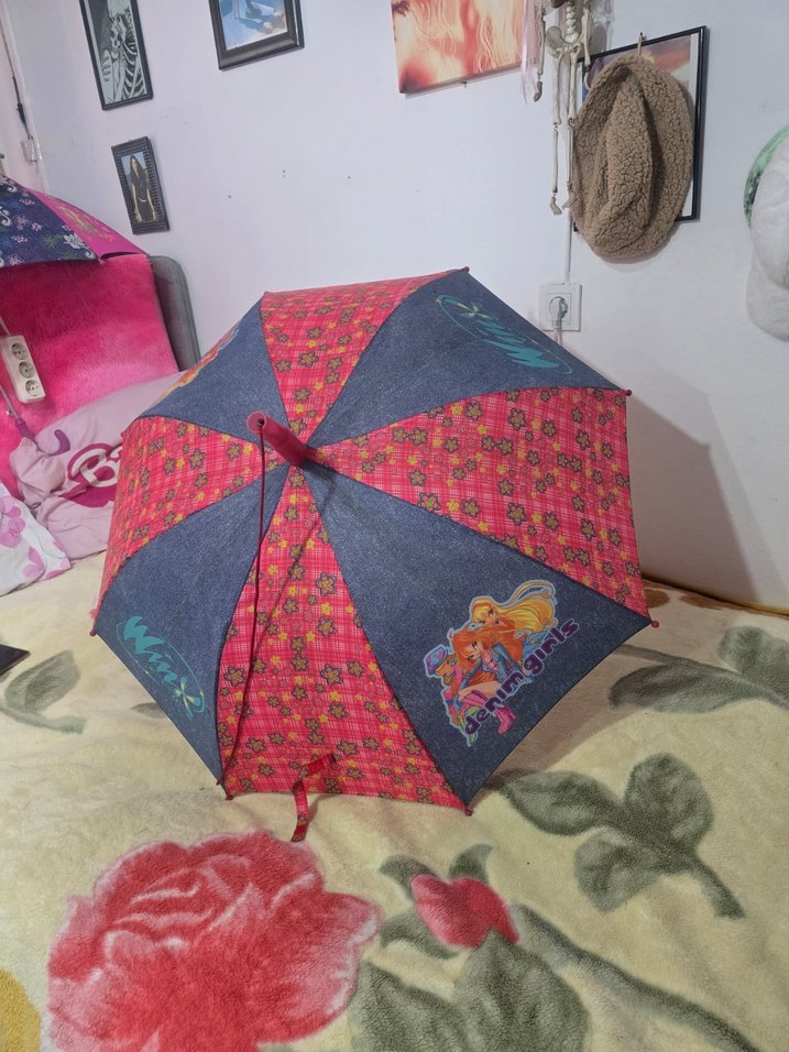 Renkli, bohem tarzda püsküllü kadın şemsiye, retro desenlerle dikkat çeker. ☂️