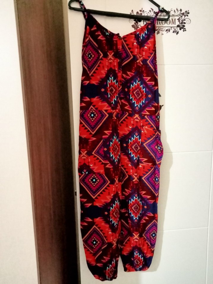 Renkli, bohem tarzda, salaş kesim ve drapeli tulum günlük kullanım için uygundur.