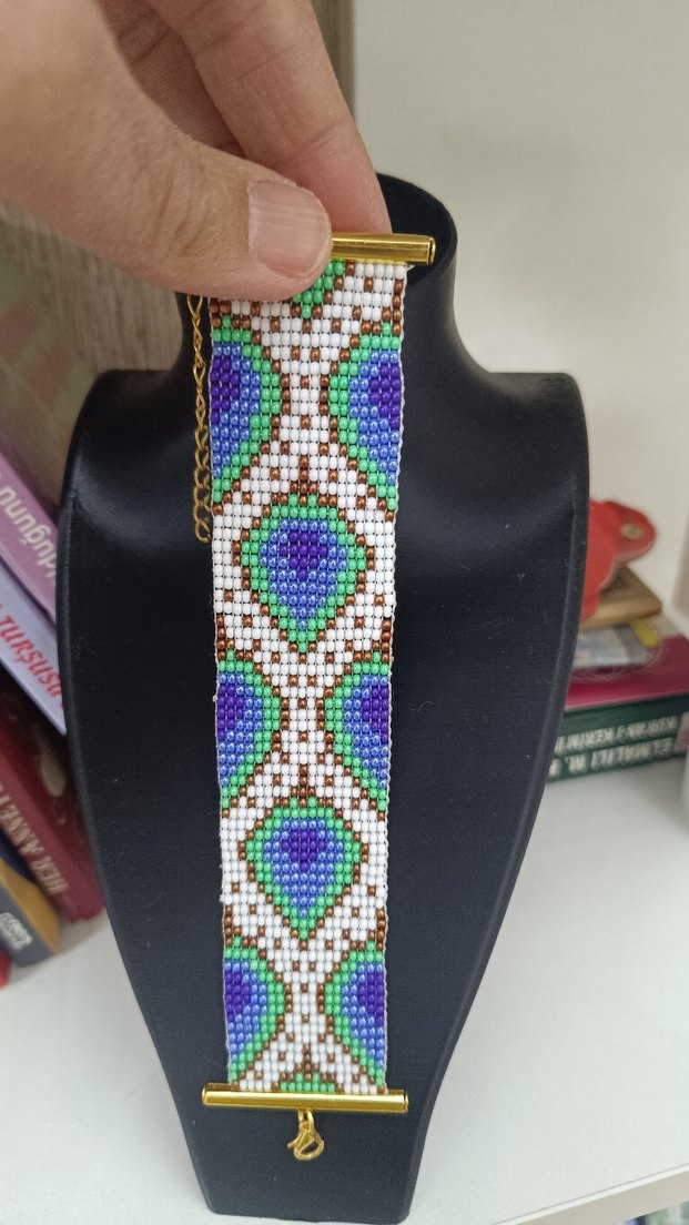 Kum boncuklarla elde yapılmıştır bileklik, bohem tarzını yansıtır ve günlük kullanıma uygundur.