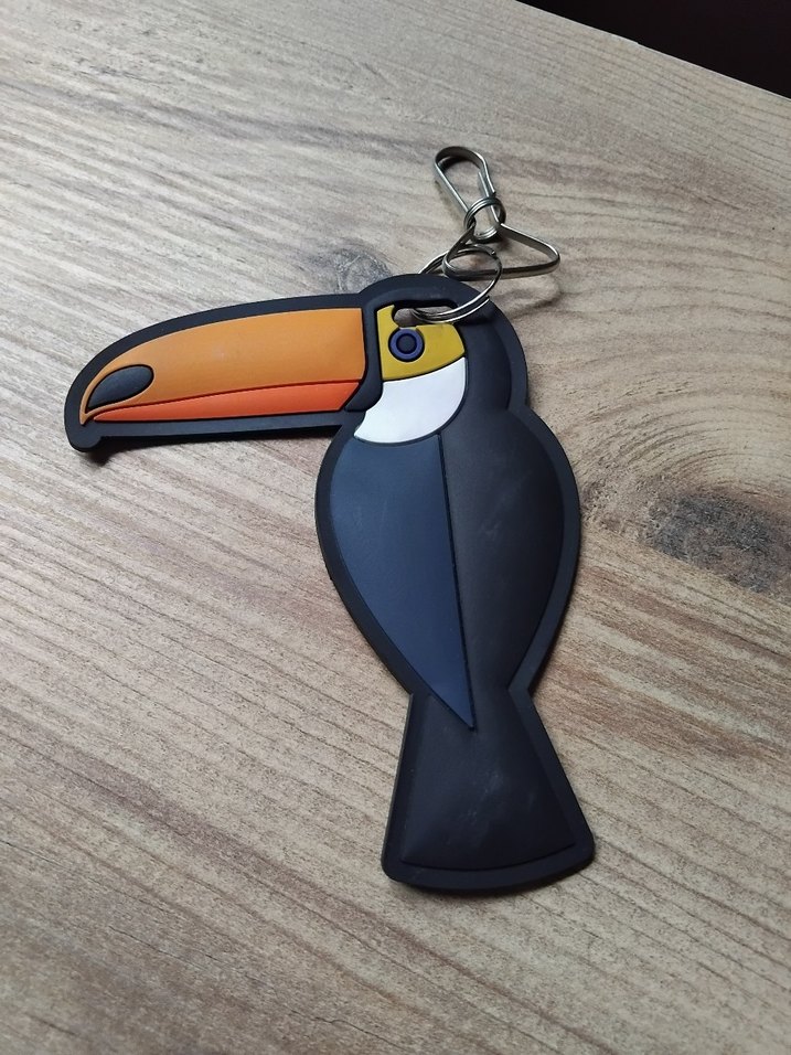 Bohem tarzda, püsküllü ve renkli tukan tasarımlı minimalist valiz etiketi