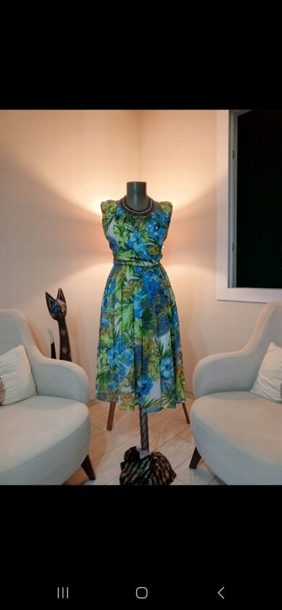 Renkli bohem uzun elbise, straplez yakalı, drapeli ve salaş kesimdedir. Kolsuz tasarımı ve tie-dye deseniyle günlük kullanıma uygundur.