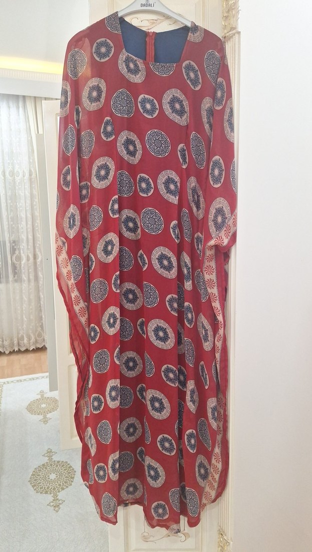Renkli, uzun kollu ve salaş kesim bohem elbise. Drapeli detayları ve yuvarlak yaka ile sentetik kumaştan üretilmiştir. Günlük kullanıma uygundur.