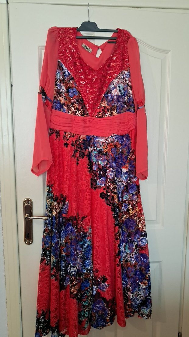 Renkli bohem uzun kollu elbise, V yaka ve bol kesim, drapeli detaylarla düğünler için uygundur.