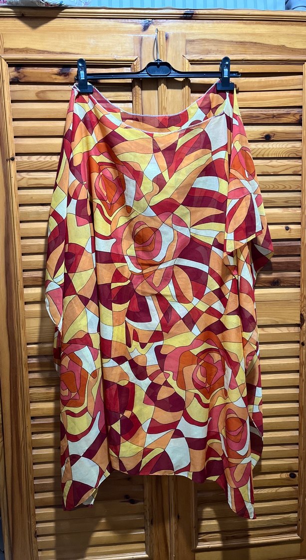Renkli, bohem tarzda, kısa kollu, bol kesim, uzun pareo. Canlı tie-dye desenli, denizde mayo ve bikini üstüne uygundur. İhtiyacı olan inceleyerek alım yapabilir. İade kabul etmiyorum.