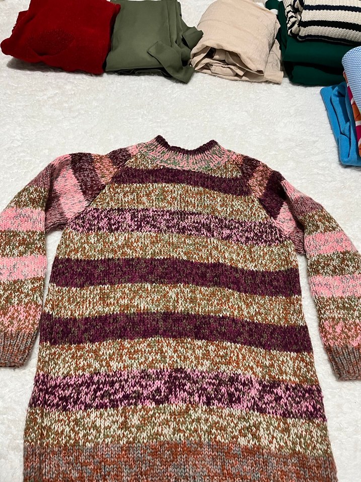 Renkli Bohem Uzun Triko Kazak