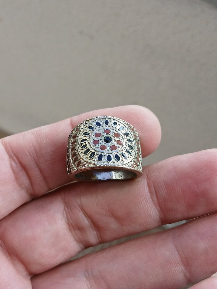 Bu vintage tarz erkek yüzük, renkli bohem desenleri ve canlı taşlarıyla sade ama benzersiz bir görünüm sunar.