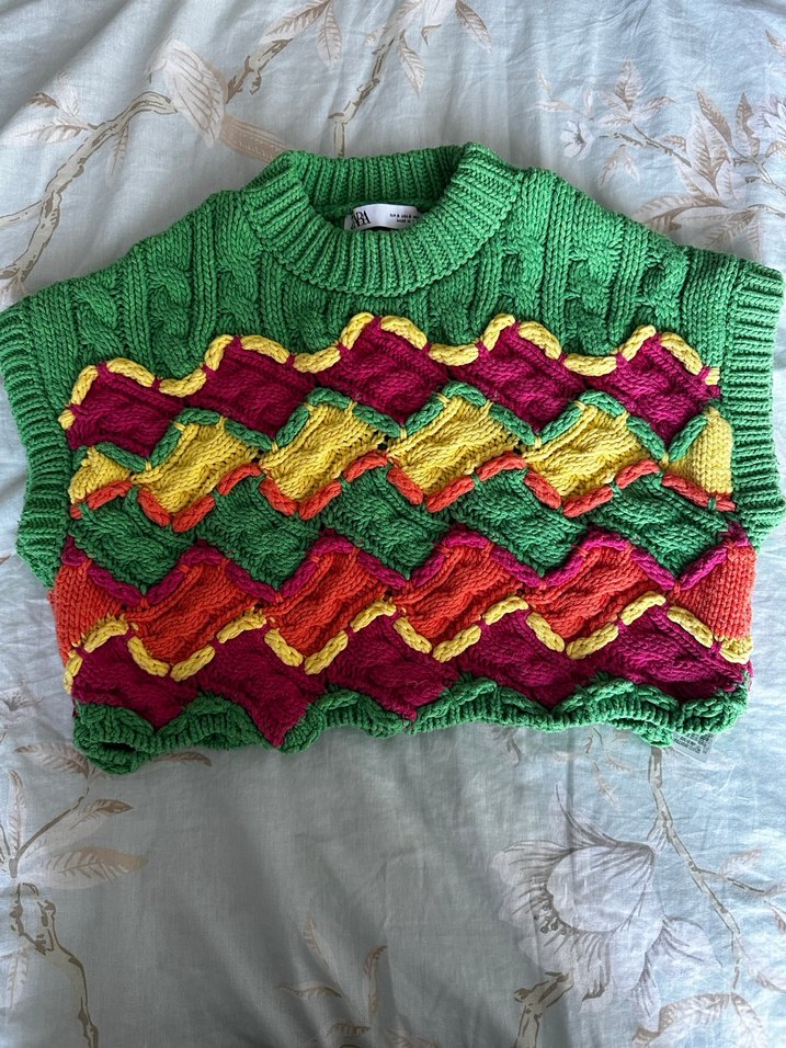 Renkli Bohem Zara crop Triko Kazak