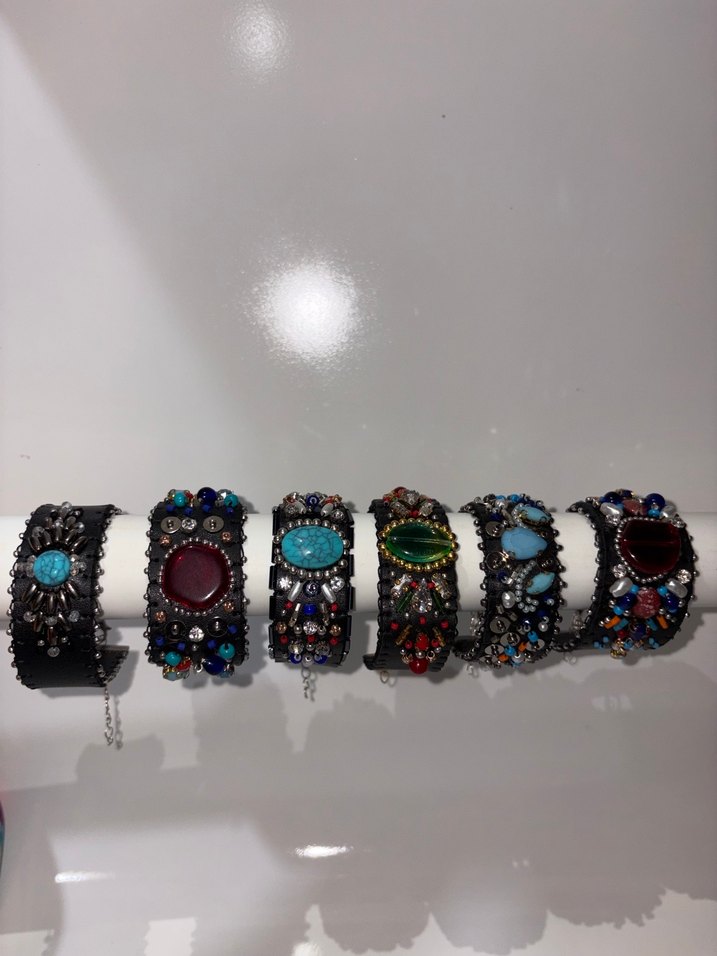 Renkli boncuklar ve işlemeli detaylarla bohem tarzda, günlük kullanıma uygun bileklikler.