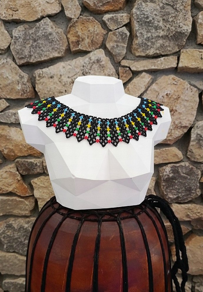 Renkli boncuklarla işlenmiş, uzun ve geleneksel desenli kadın kolyesi. Bohem ve retro tarzını yansıtır, günlük kullanıma uygundur sipariş üzerine yapılır. renkleri değiştirebilirsiniz.