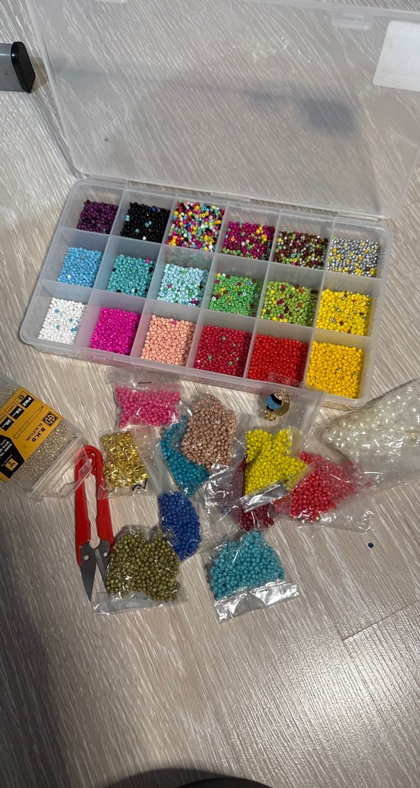 Şeffaf kutuda düzenlenmiş, çeşitli açık ve canlı renklerde küçük boncuk seti. Yaratıcı aksesuar tasarımları için idealdir. Görseldeki tüm ürünlerle birlikteki fiyatıdır