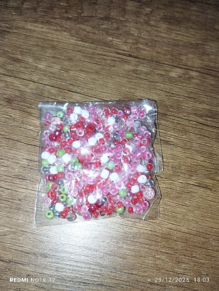 Kırmızı, beyaz ve yeşil tonlarında boncuk